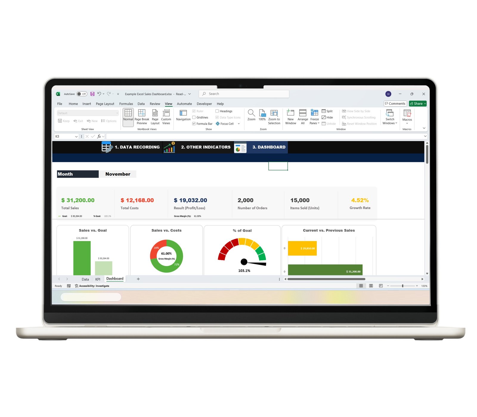 Stop wasting valuable time consolidating scattered data. To make fast, strategic decisions, you need a clear, professional, and up-to-date view of your business performance. This Sales Dashboard Excel is the ultimate tool—designed to simplify the management of your revenue, costs, and goals. With this specialized spreadsheet, you can measure your progress against targets and understand your operational results at a glance.