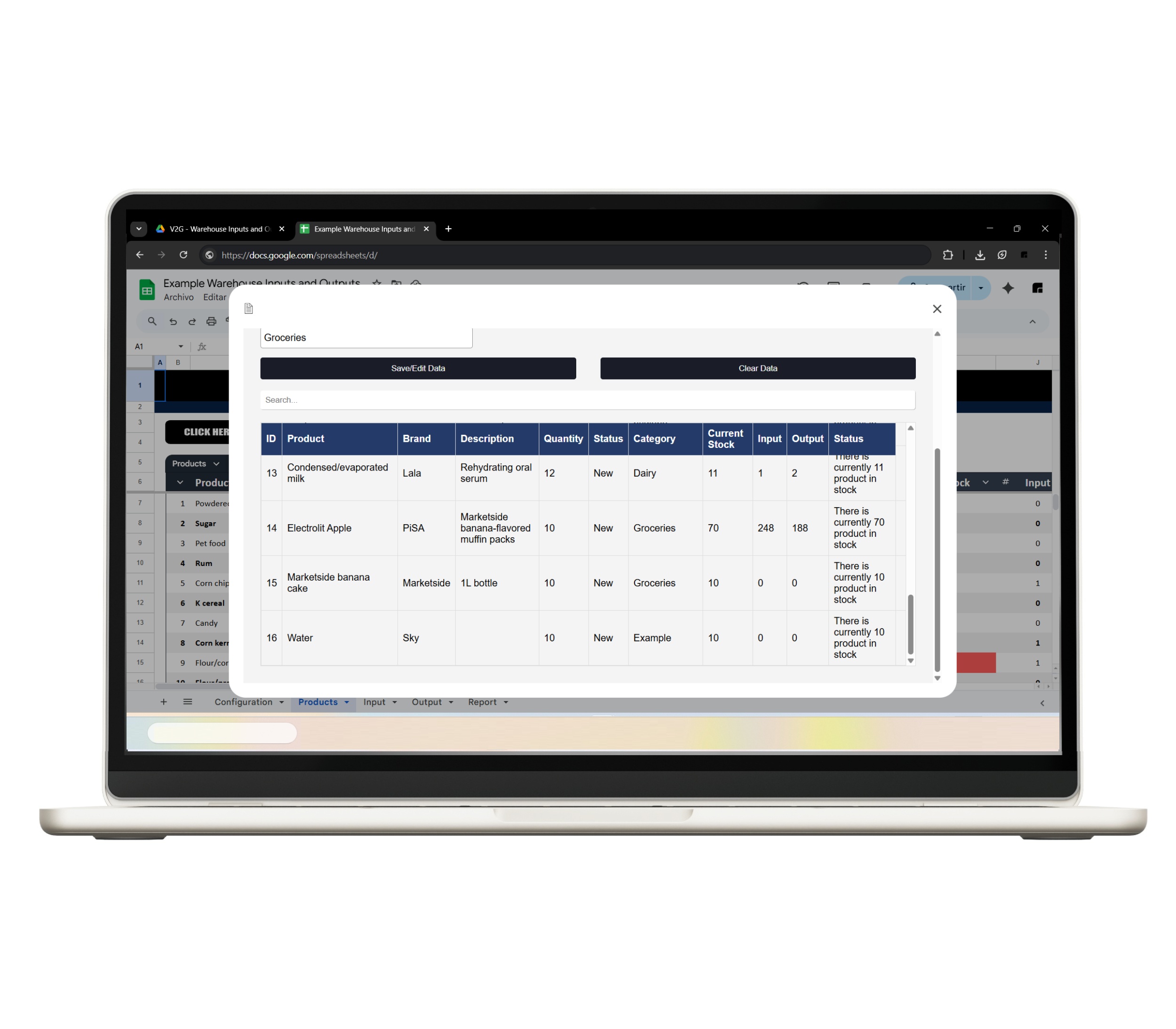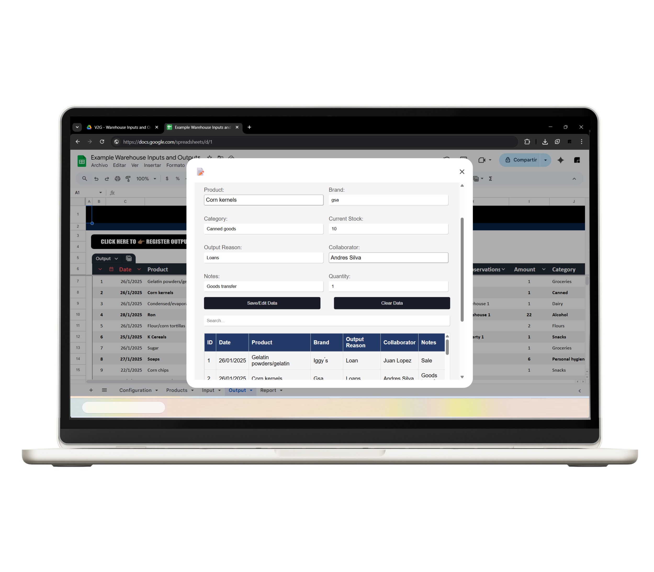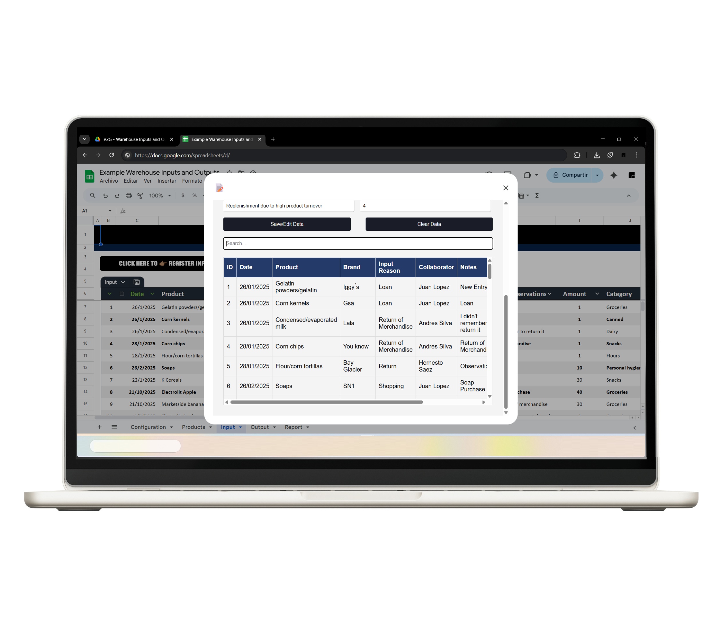 Google Sheet for Tracking Warehouse Inputs and Outputs